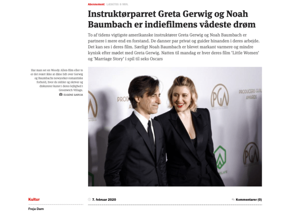 Portræt af Greta Gerwig og Noah Baumbach i Information 7. februar 2020