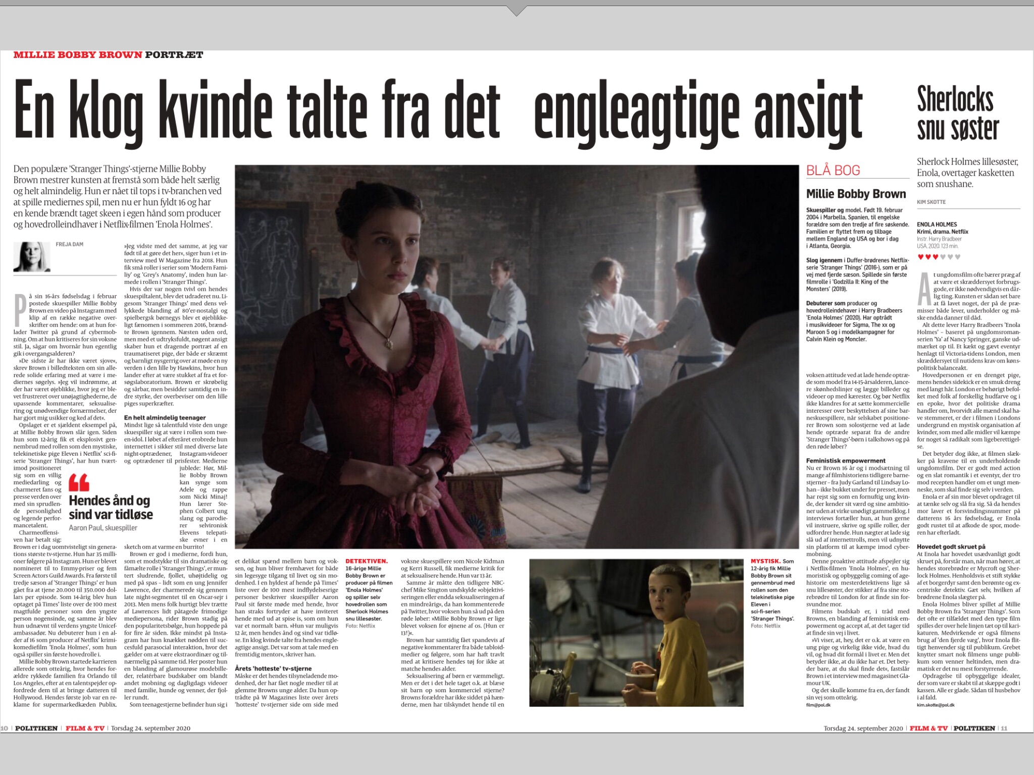 Portræt af Millie Bobby Brown i Politiken 24. september 2020